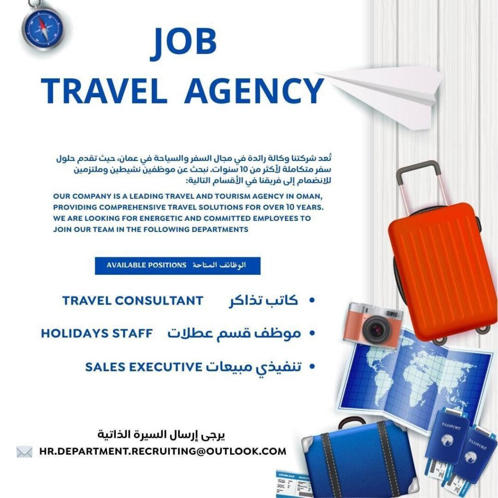 شركة رائدة في مجال السفر والسياحة – 3 وظائف شاغرة