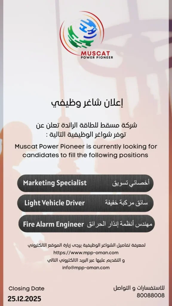 وظائف متنوعة في شركة مسقط للطاقة الرائدة – عمان