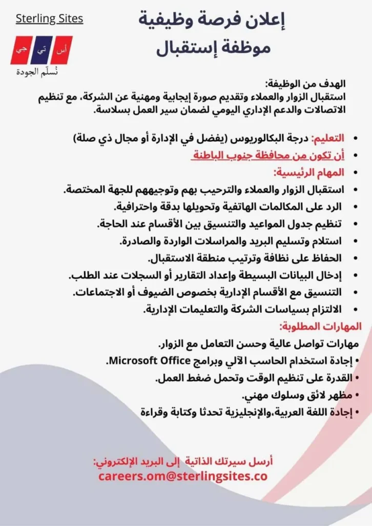 وظيفة موظفة استقبال في سلطنة عمان