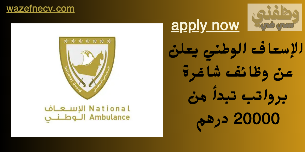 وظائف الامارات اليوم الإسعاف الوطني يعلن عن وظائف شاغرة برواتب تبدأ من 20000 درهم