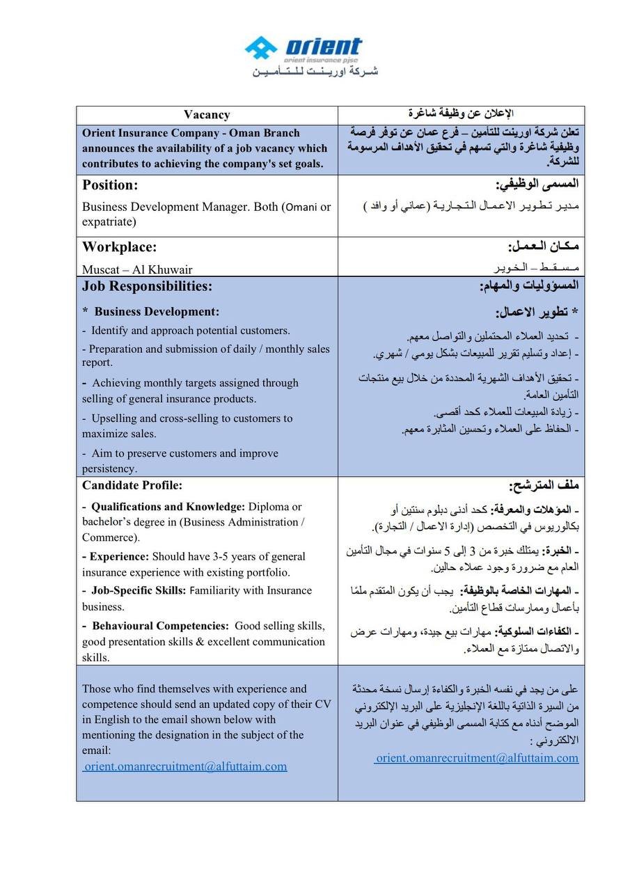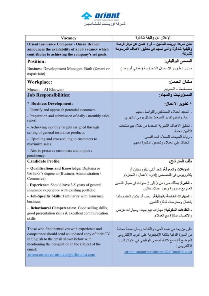 أبرز الوظائف الشاغرة في سلطنة عمان اليوم