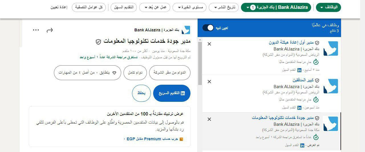 وظائف بنك الجزيرة (الرياض-جدة)